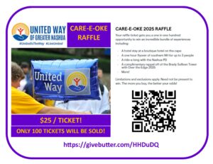 Show off your singing skills or cheer on your favorite performers at Care-E-Oke, a karaoke fundraiser hosted at the Nashua Center for the Arts. Now in its third year, this lively event benefits our community safety net grants which support local nonprofits and direct programs provided by UWGN.
