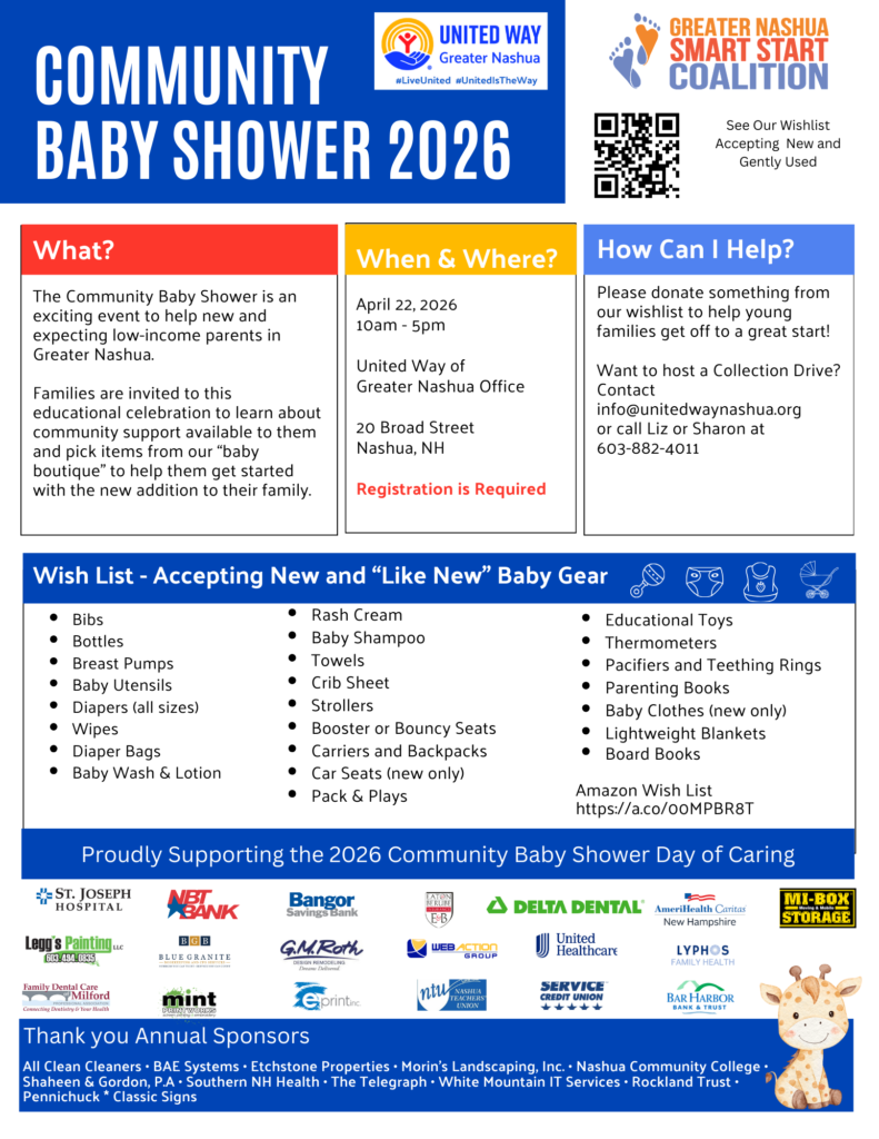 For more information contact United Way of Greater Nashua and info@unitedwaynashua.org or (603)882-4011.